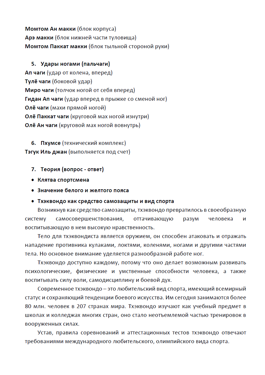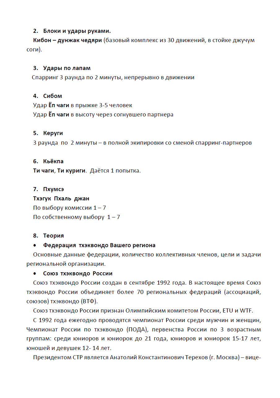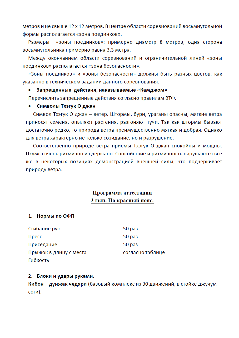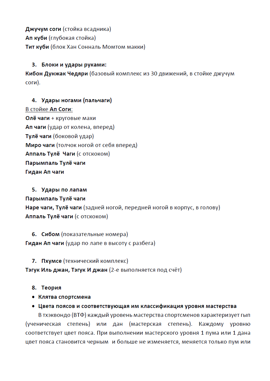 Программа аттестации на цветные пояса тхэквондо ВТ