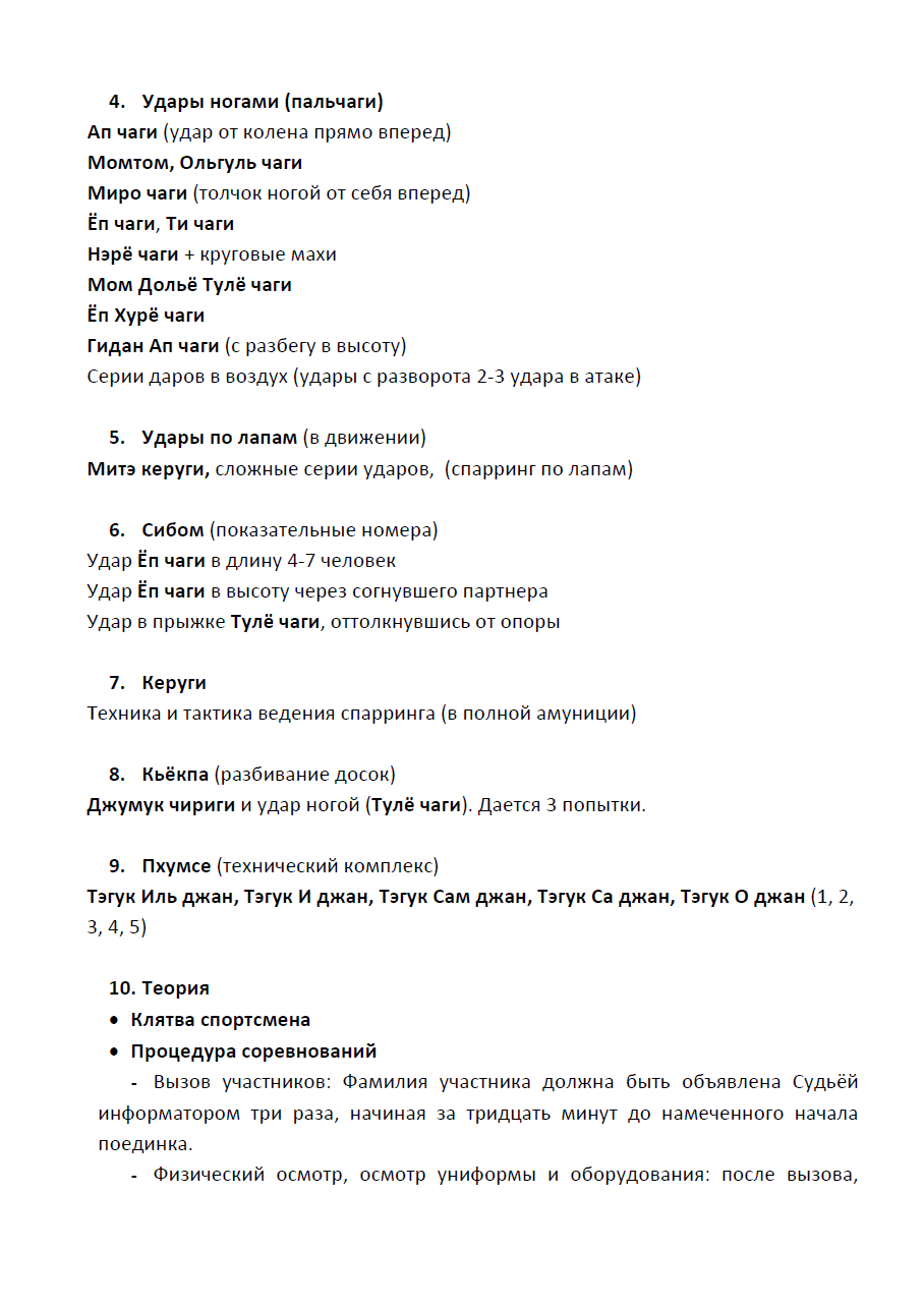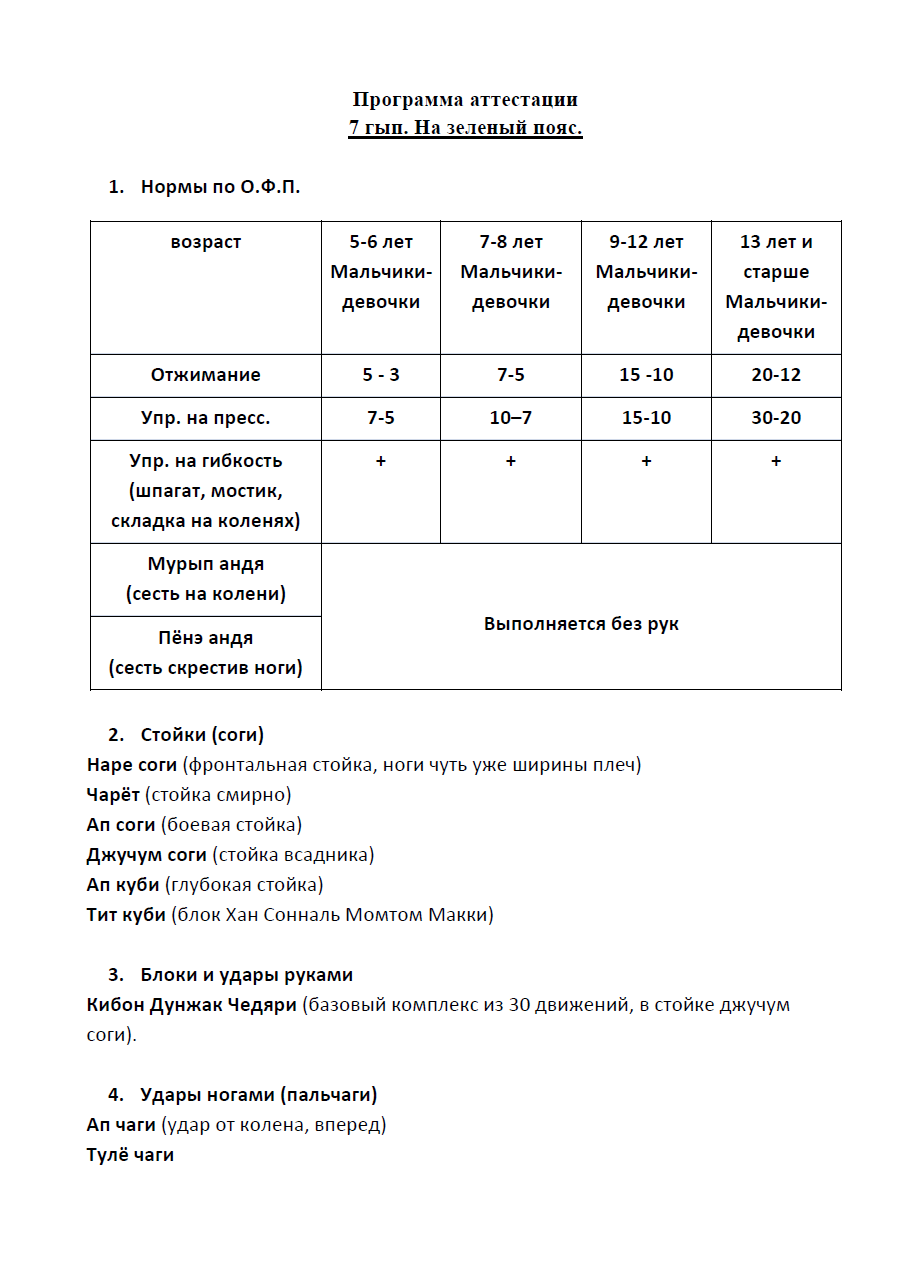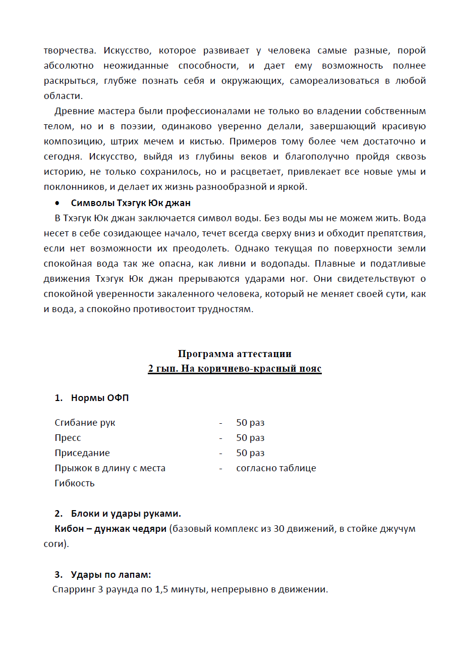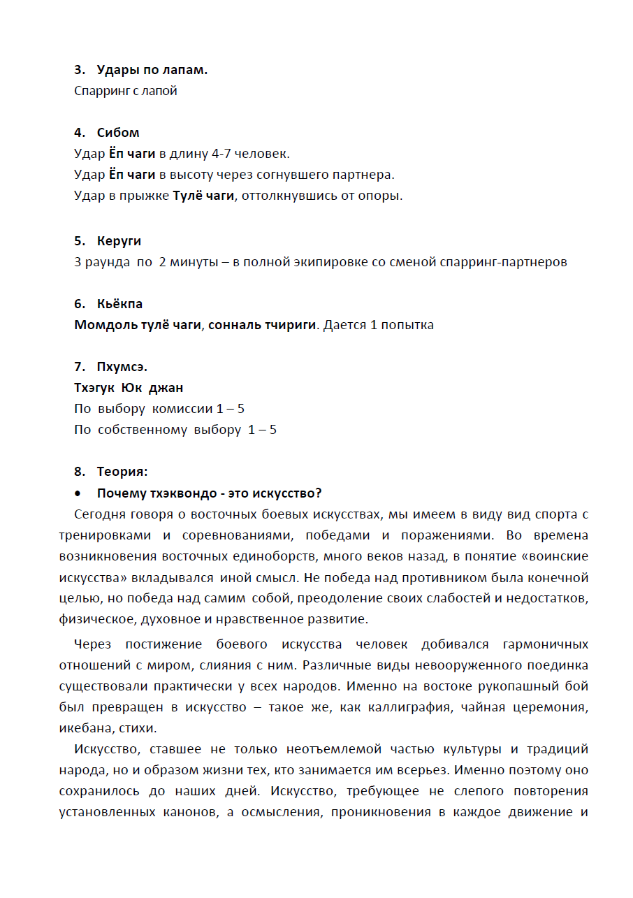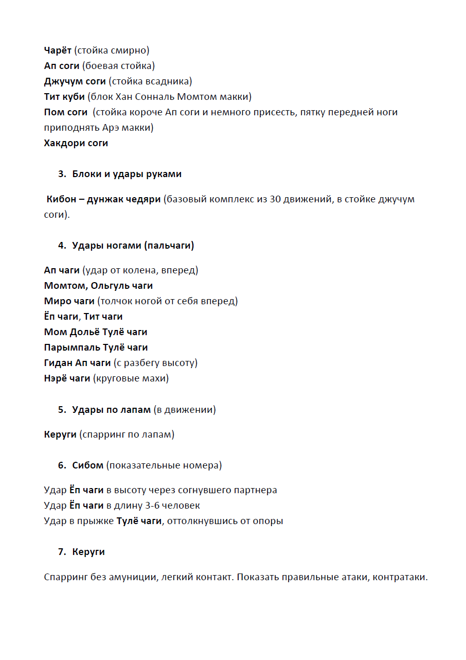 Программа аттестации на цветные пояса тхэквондо ВТ