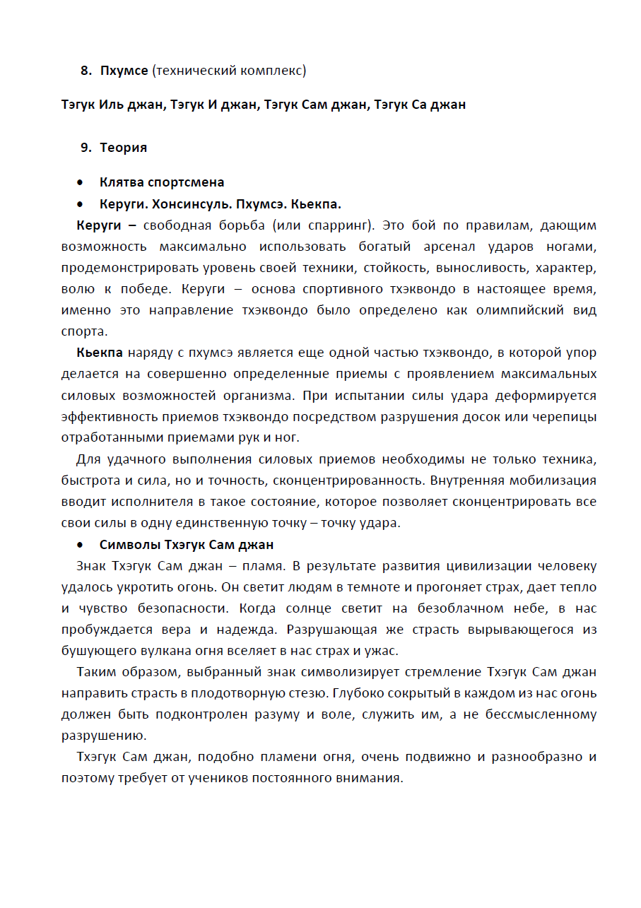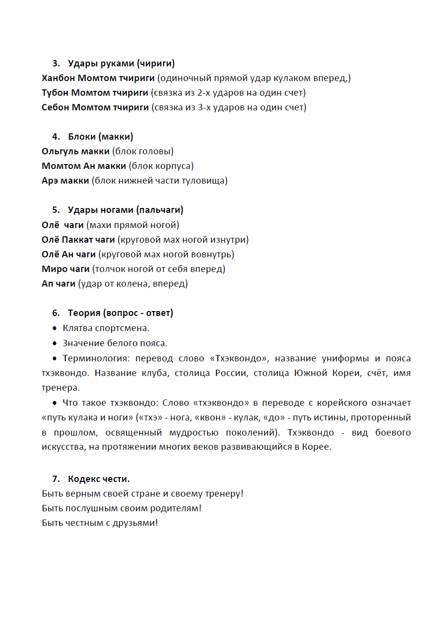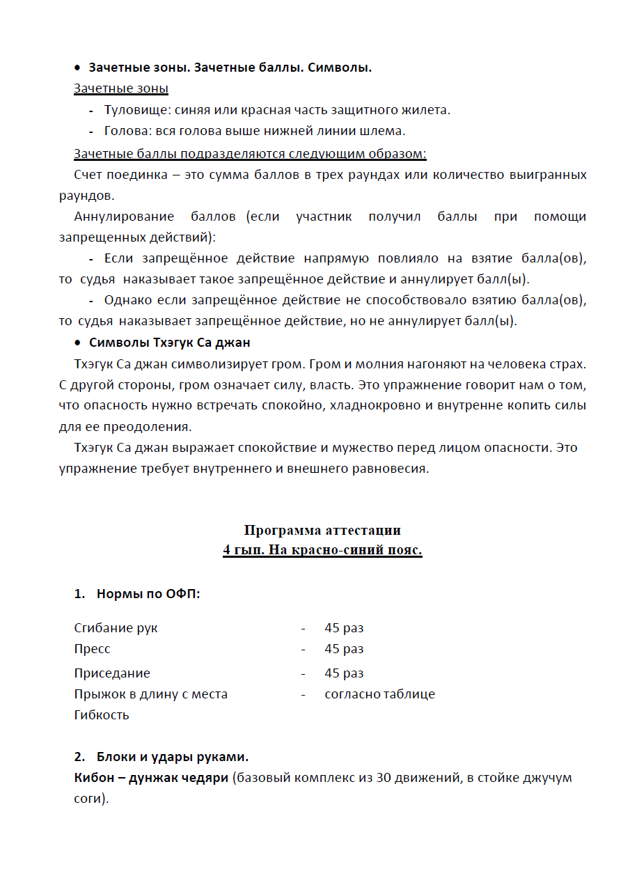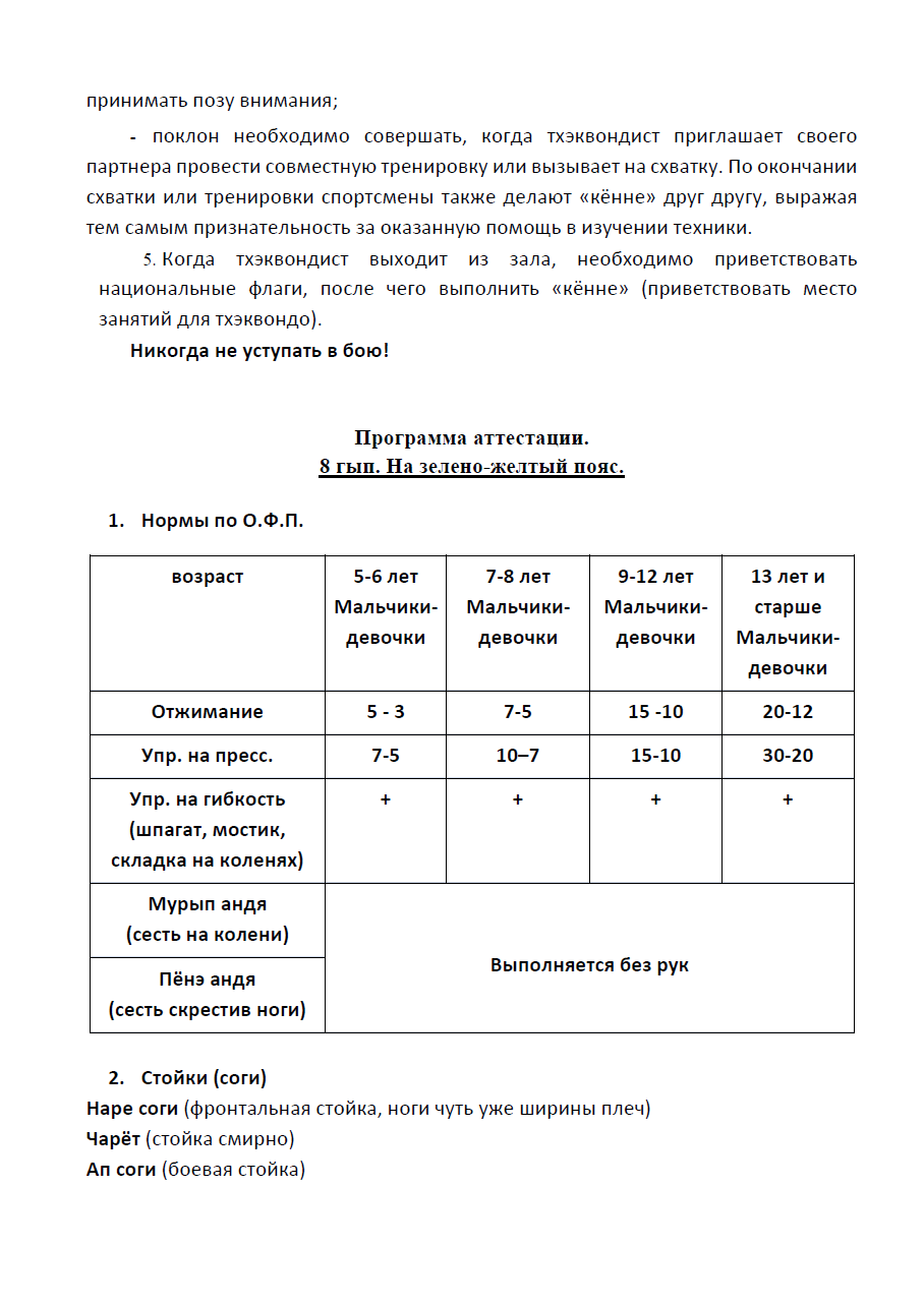 Программа аттестации на цветные пояса тхэквондо ВТ