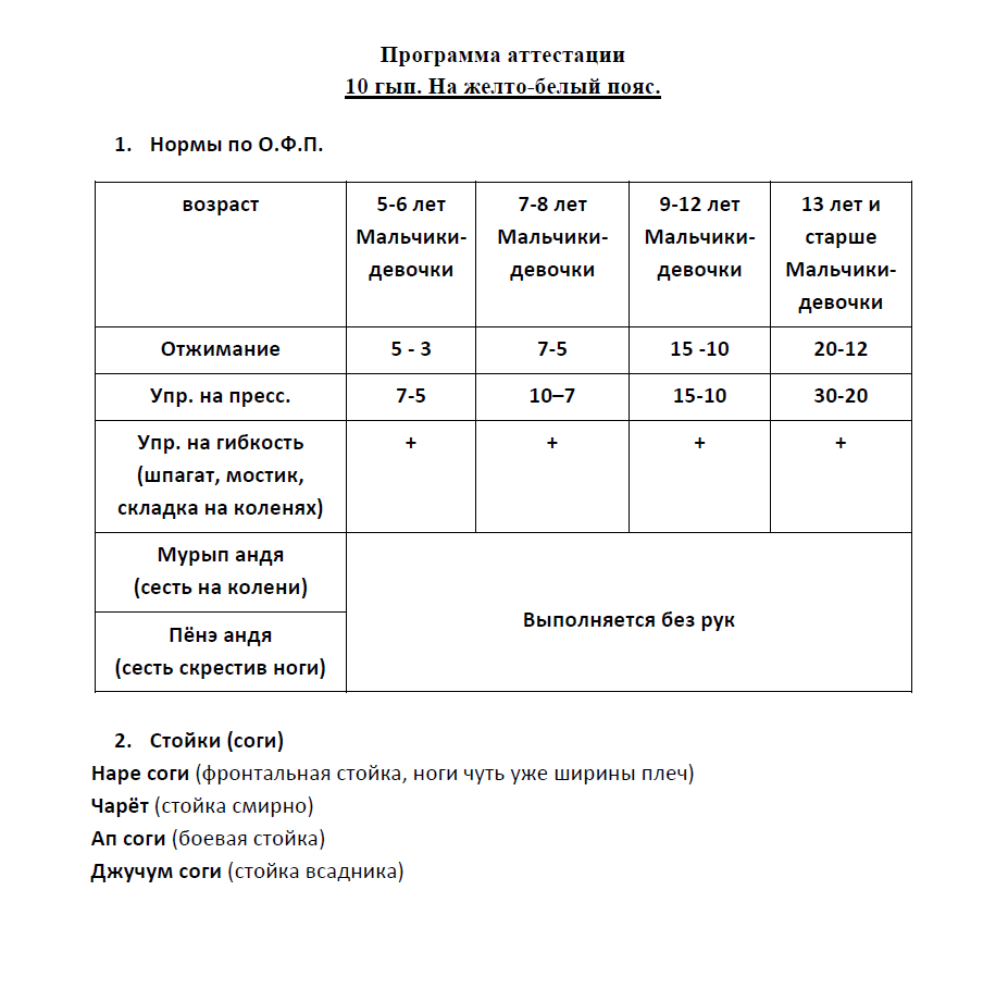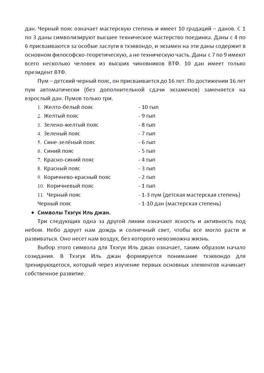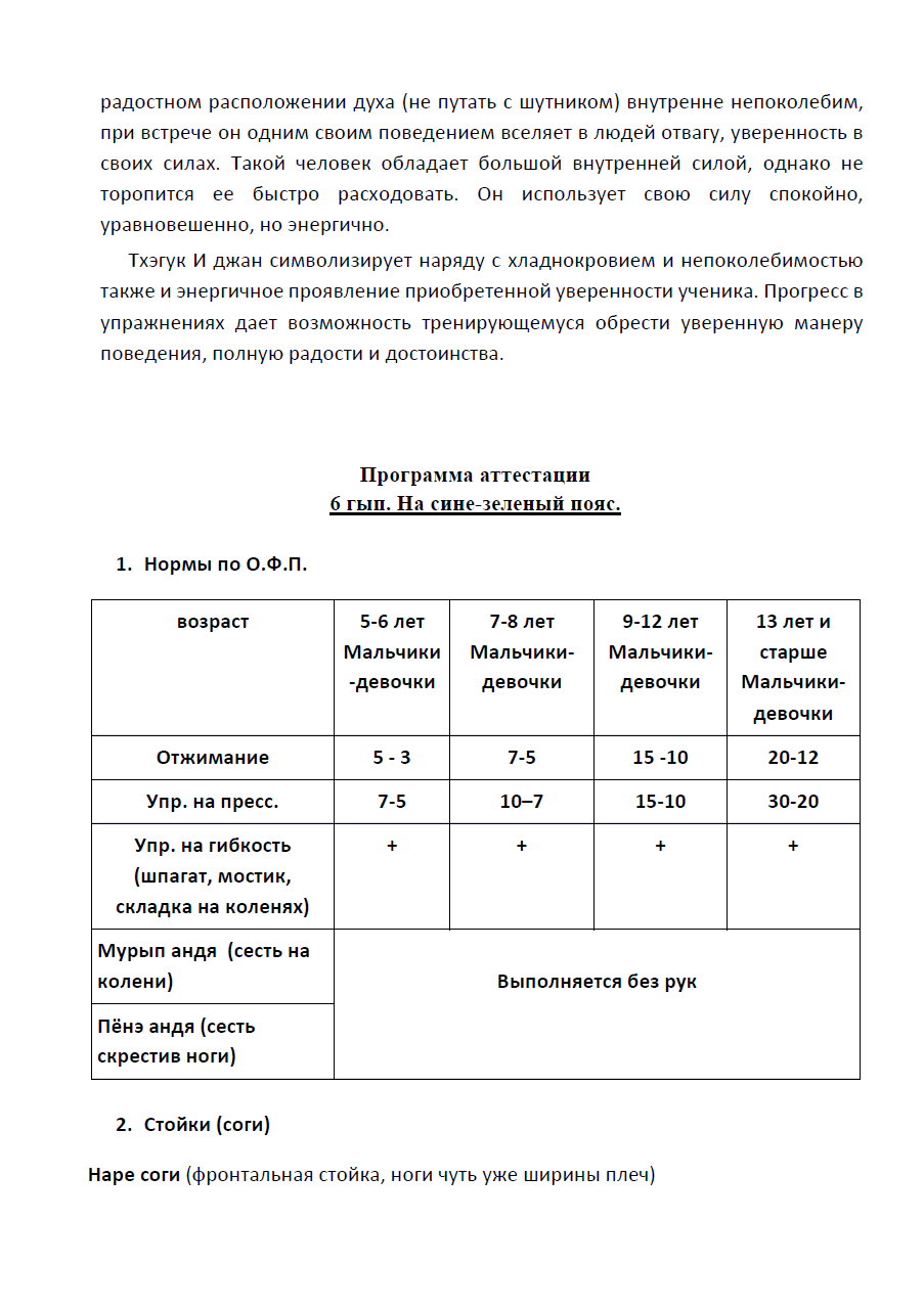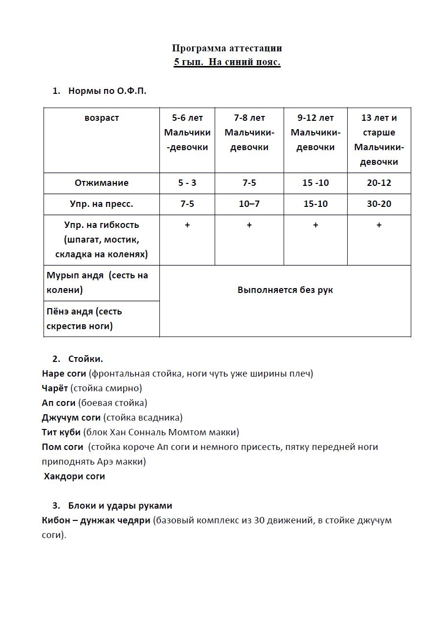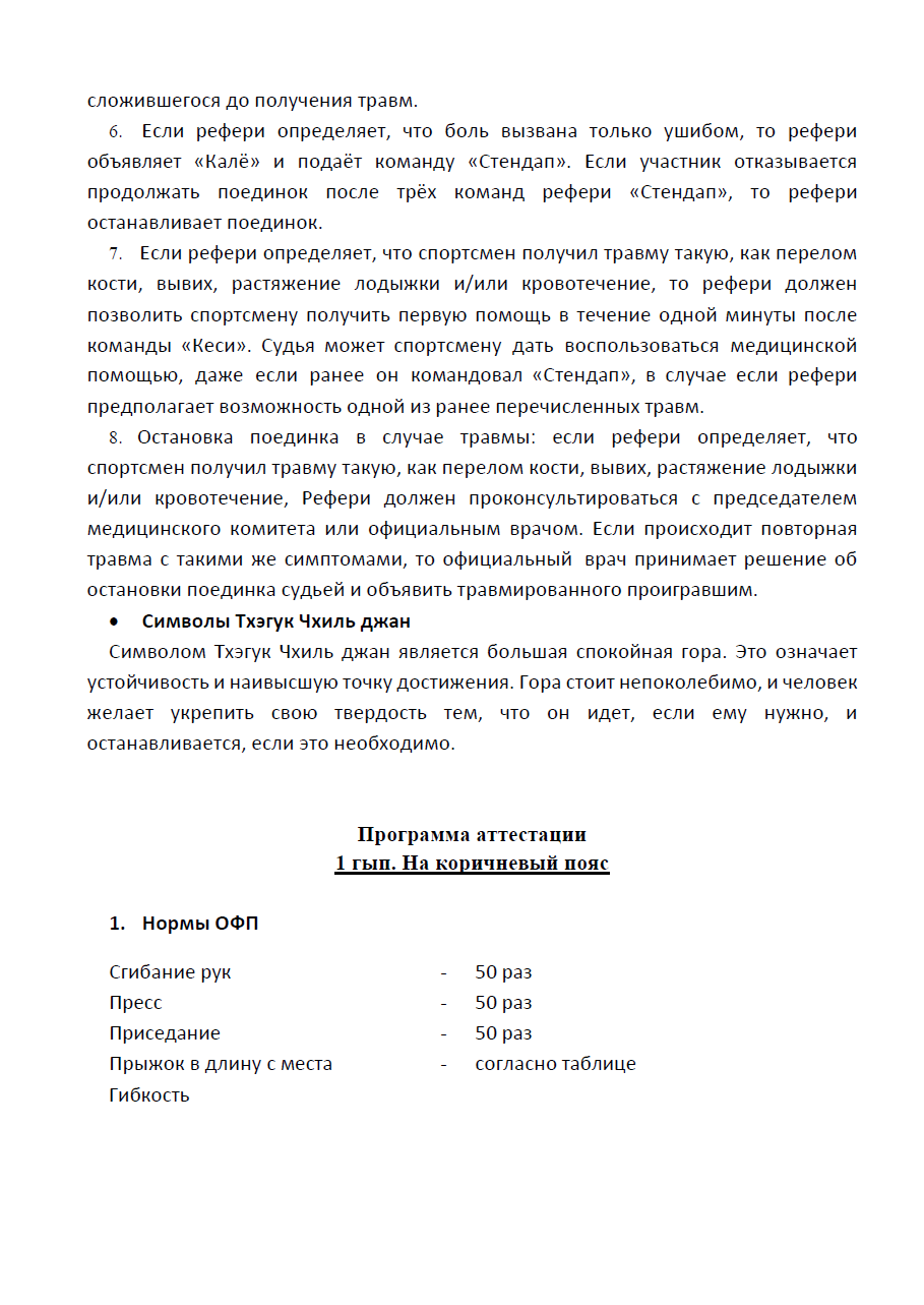 Программа аттестации на цветные пояса тхэквондо ВТ