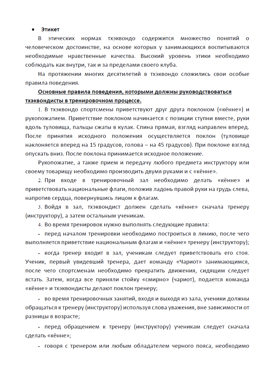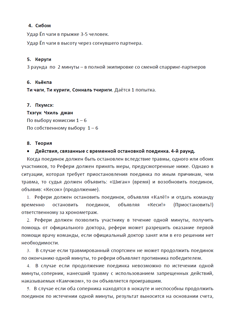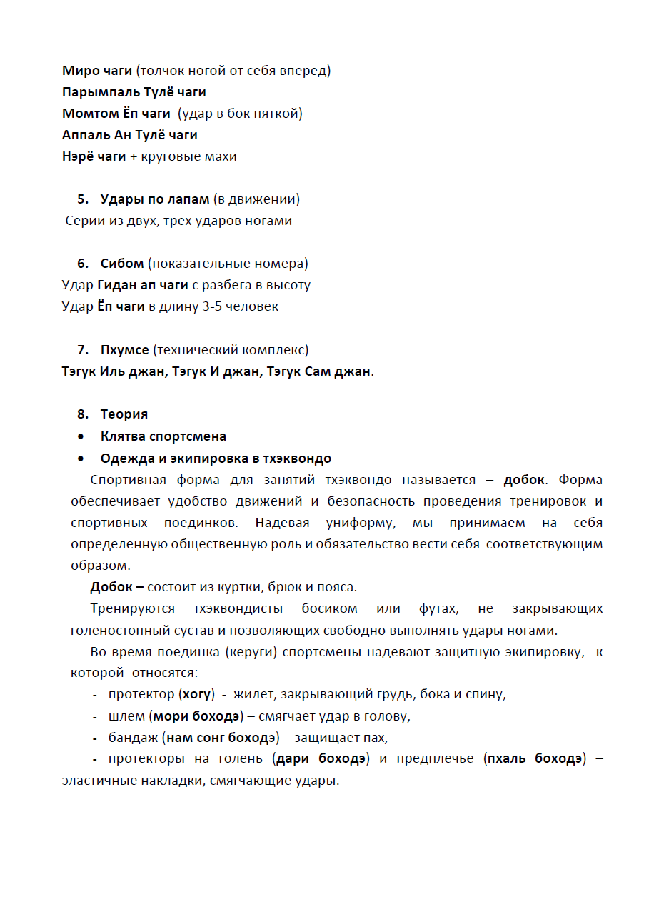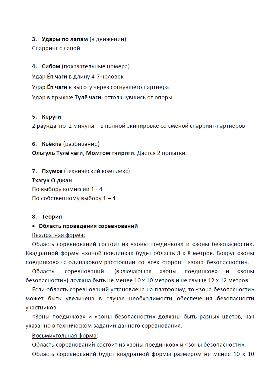 Программа аттестации на цветные пояса тхэквондо ВТ